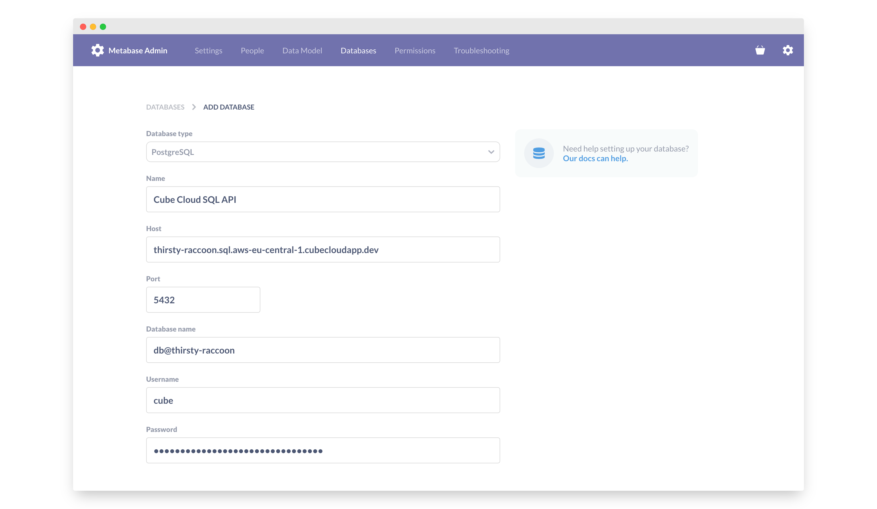 Connecting from Metabase